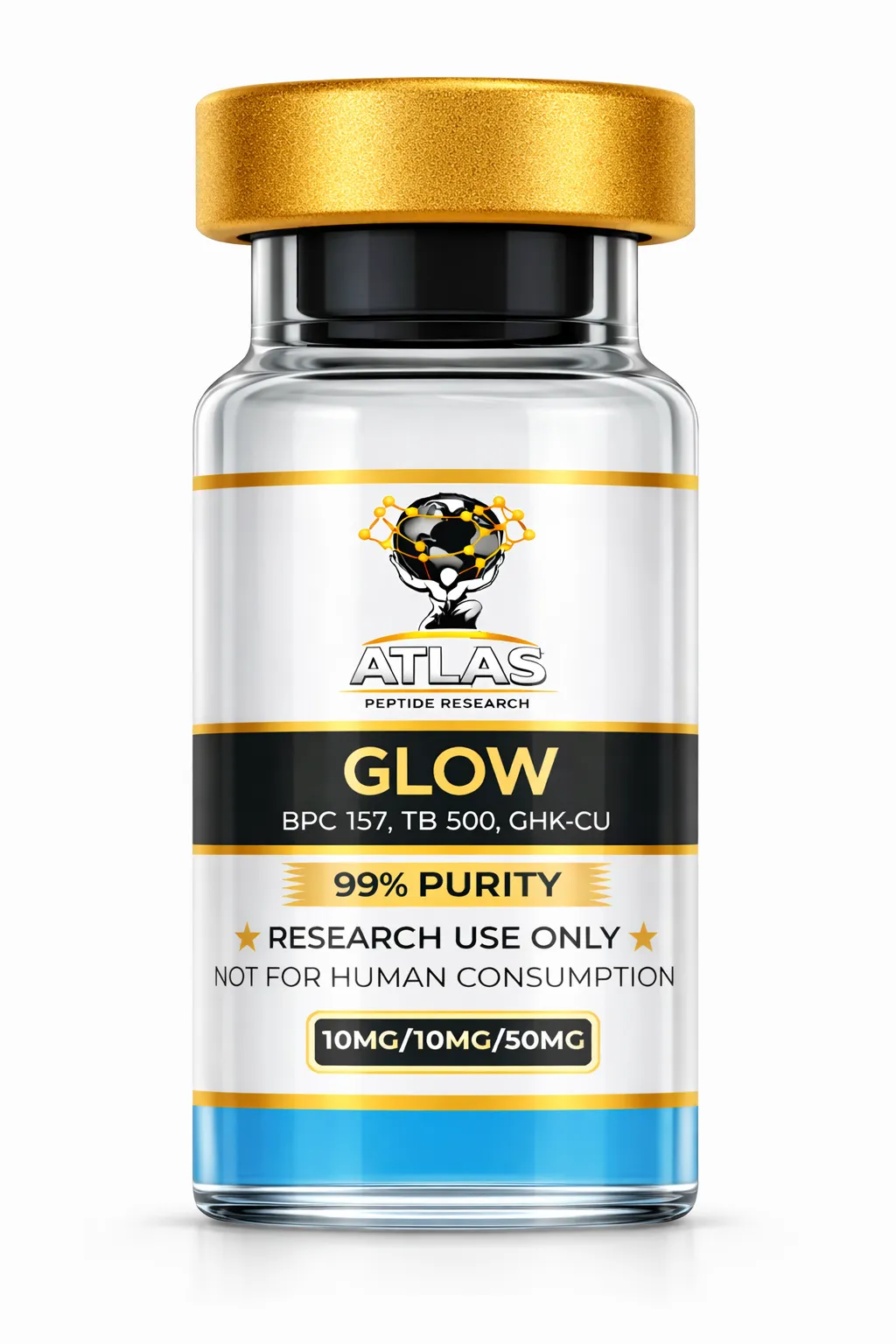 GLOW is a scientifically formulated triple-peptide complex designed to support research into full-body regeneration, recovery, and rejuvenation. Combining the restorative power of BPC 157, TB 500, and the skin-enhancing, age-defying benefits of GHK-Cu, GLOW represents the future of advanced peptide synergy.